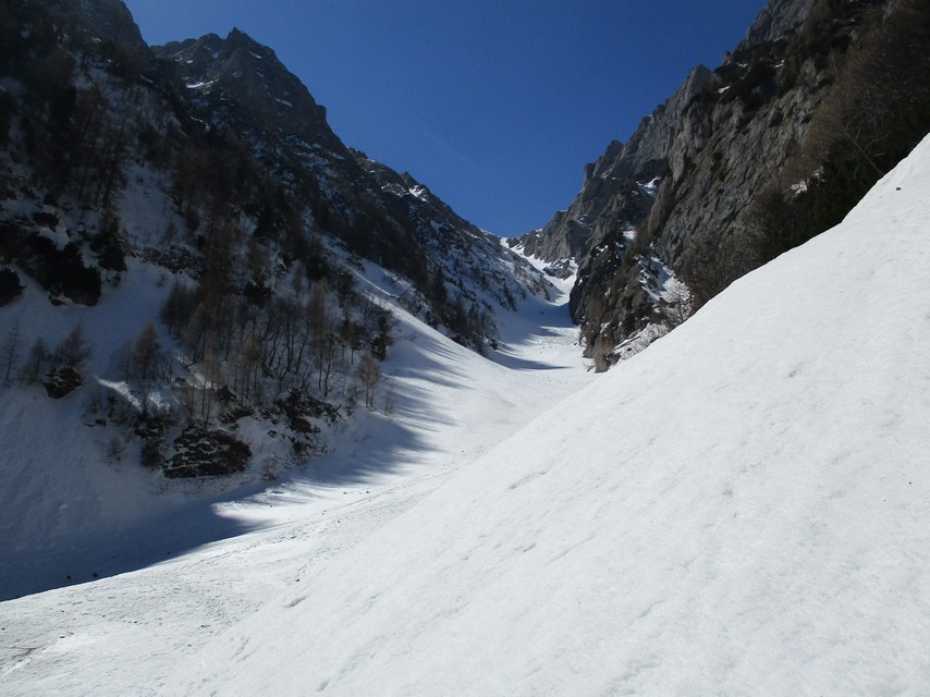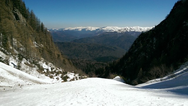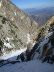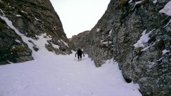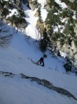 Incepem sa coboram pe Valea Alba , cu atentie la zapada si la panta.