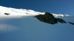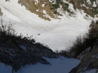 L-am asigurat si pe Daniel, care a venit, trecand si el peste saritori. Locul unde am regrupat se afla in plina zona de zapada inghetata consistent. Si inclinata.