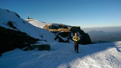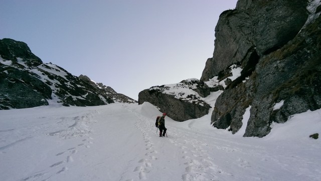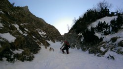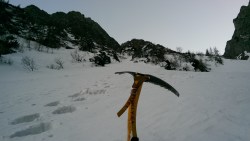 Ne pregatim pioletii, coarda si ce mai trebuie pentru un traseu alpin hivernal, si incepem sa urcam.