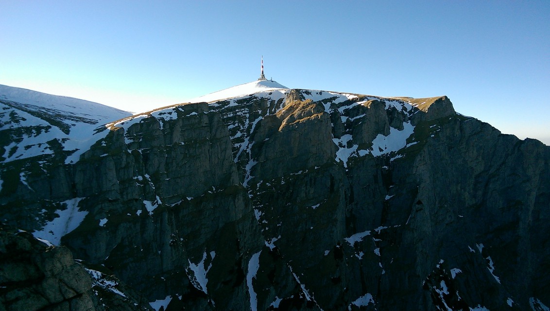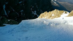 Reluam urcusul (la coltari si piolet) trecand prin dreptul Albisoarelor Hornurilor, Gemenelor si Crucii. Priveam cu admiratie la Peretele Vaii Albe.