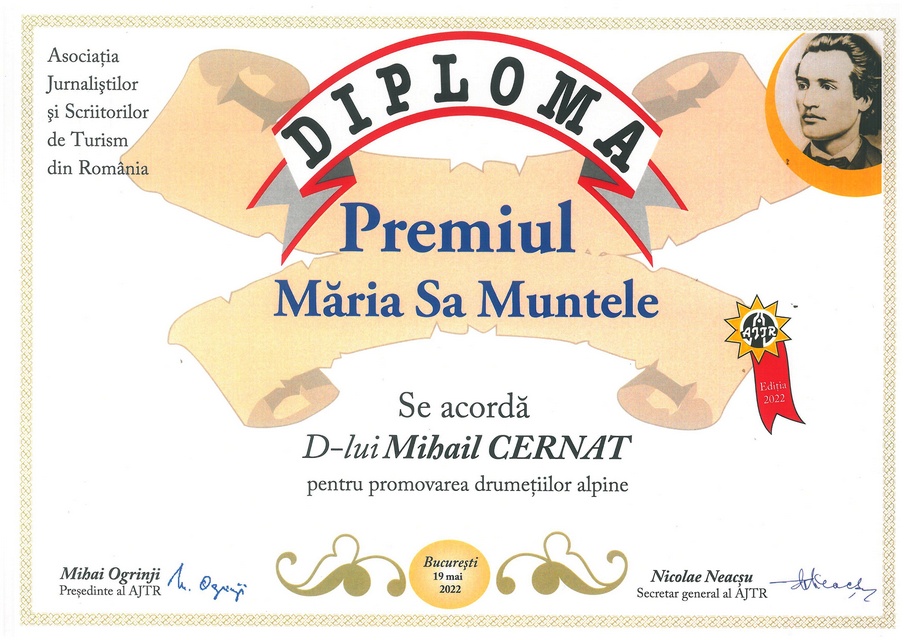 Felicitari pentru acest premiu, il meritai din plin, mai ales ca faci parte dintr-o categorie selecta de oameni „scriitori”, pasionati de munte, care si-a inceput activitatea inainte de a exista internetul cu explozia lui de informatii. Ma bucur si ca ai inceput iar sa tii proiectiile de la casa Schiller, sper sa ajung si eu cu copiii mei cat de curand.