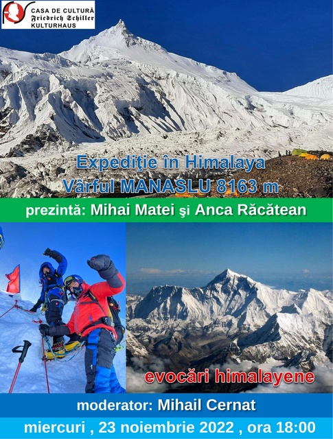 Conferinta cu tematica montana la Casa de Cultura Schiller din Bucuresti miercuri 23 noiembrie 2022, incepand cu ora 18:00