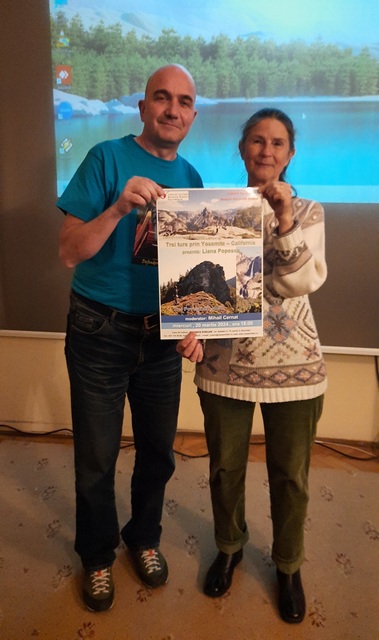 California, un stat din USA, aflat pe coasta de vest, renumit pentru frumusețile sale; Parcul Național Yosemite, cu primele arii protejate încă din anul 1864, conține numeroase atracții turistice, precum cascade înalte, văi adânci, pereți de granit (celebrul El Capitan), vechi arbori sequoia. Se pot practica drumeții de tot felul, există locuri de campare, dar și cabane; cățărătorii vin să-și testeze abilitățile în marii pereți de granit; oamenii fără potențiale deosebite se pot plimba, Yosemite este o destinație turistică pentru toată lumea. Montaniarda Liana Popescu ne va conduce, prin imagini și relatări, pe câteva trasee de drumeție din superbul Yosemite. Ne-a promis si cateva surprize!